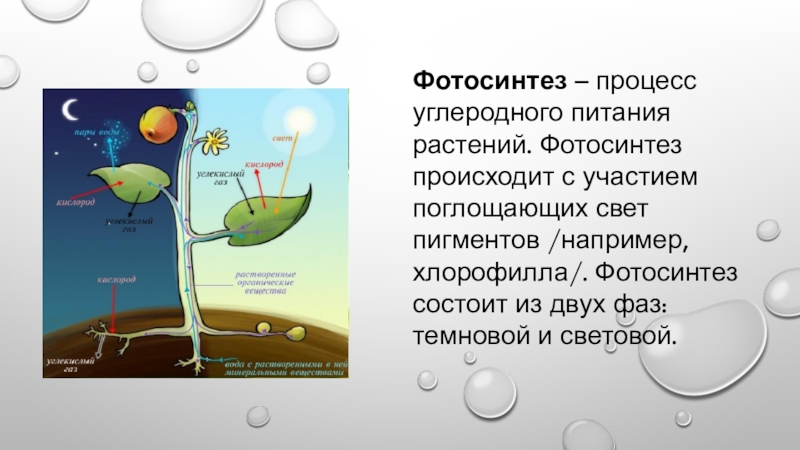 Слайд 4Фотосинтез – процесс углеродного питания растений. Фотосинтез происходит с участием поглощающих