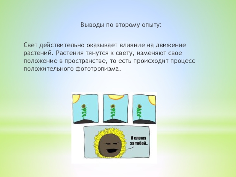 Слайд 23 В результате опытов выяснилось, что растения с затемненными колпачками на