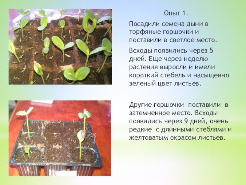 семена дыни в торфяные горшочки и поставили в светлое место.