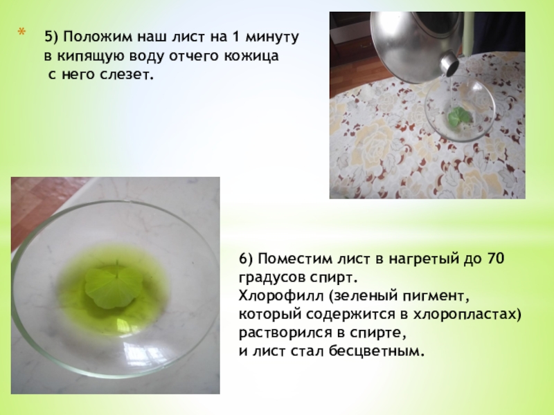 Проведём опыт по методу Сакса, чтобы доказать, что зелёные растения выделяют не только кислород, но и создают органические вещества (крахмал).
