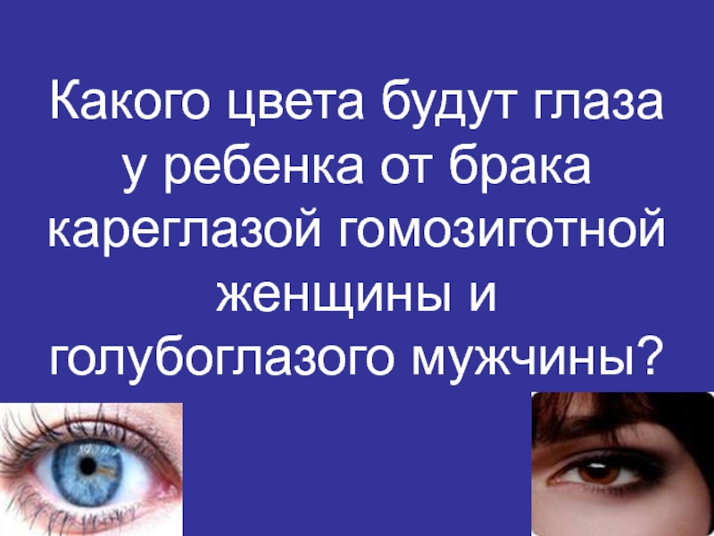 Слайд 6Какого цвета будут глаза у ребенка от брака кареглазой гомозиготной женщины
