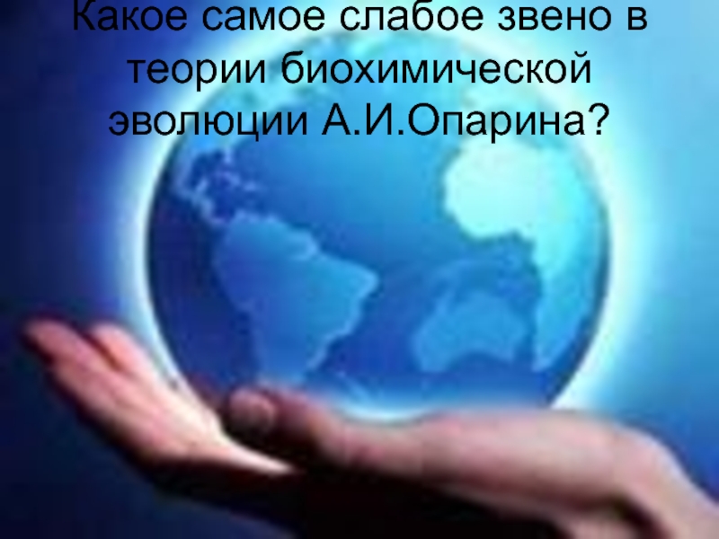Слайд 27Какое самое слабое звено в теории биохимической эволюции А.И.Опарина?