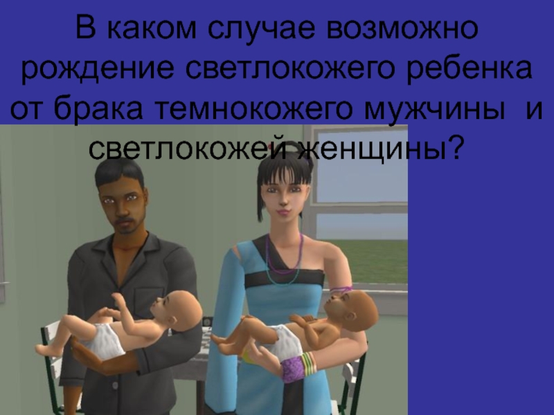Слайд 12В каком случае возможно рождение светлокожего ребенка от брака темнокожего мужчины