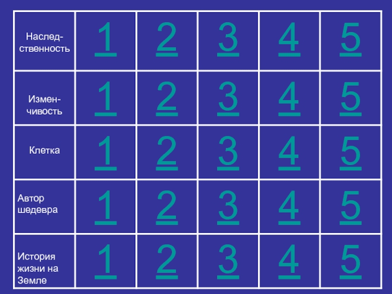 Слайд 1 Своя игра по биологии для учащихся 9 класса