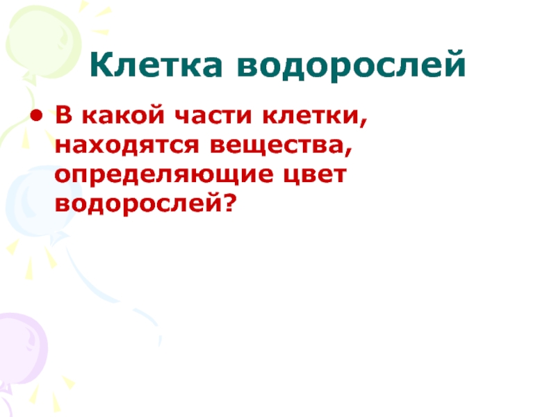 В какой части клетки, находятся вещества, определяющие цвет водорослей?