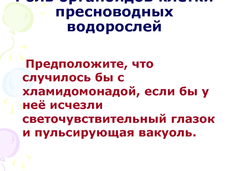 Слайд 21Роль органоидов клетки пресноводных водорослей