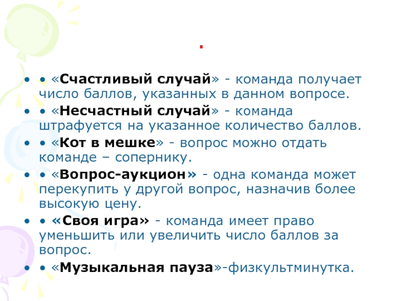 • «Счастливый случай» - команда получает число баллов, указанных в данном