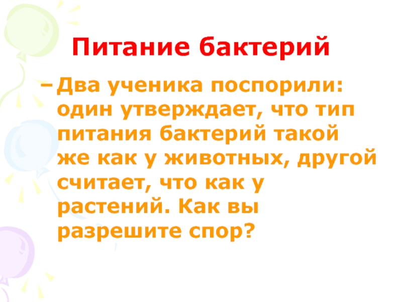 Два ученика поспорили: один утверждает, что тип питания бактерий такой