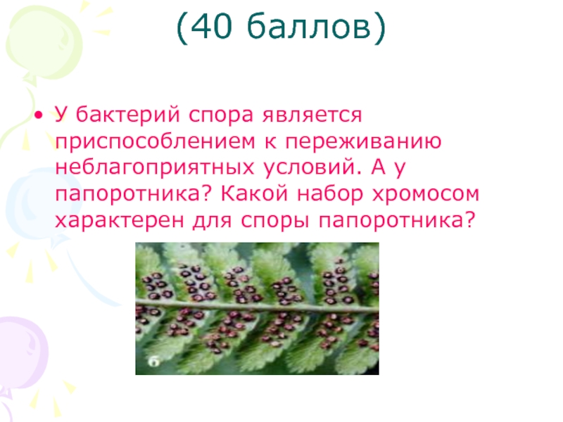 у папоротника? Какой набор хромосом характерен для споры папоротника?