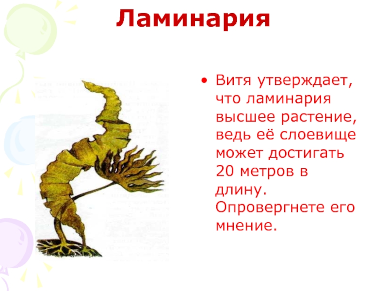 Витя утверждает, что ламинария высшее растение, ведь её слоевище может достигать