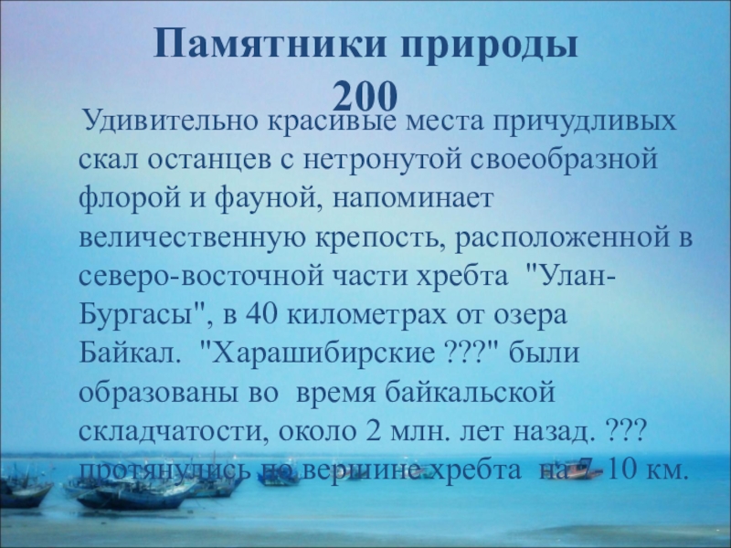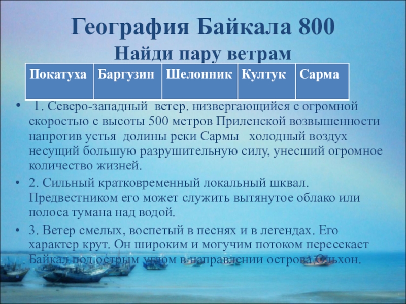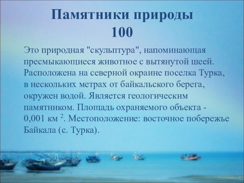 Животный и растительный мир, география Байкала, исторические факты, памятники Природы,