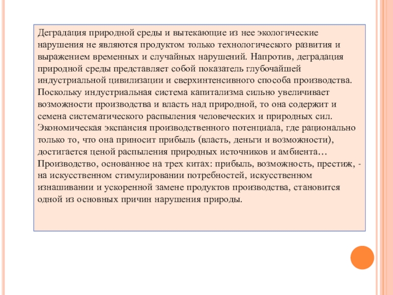 Слайд 17Деградация природной среды и вытекающие из нее экологические нарушения не являются