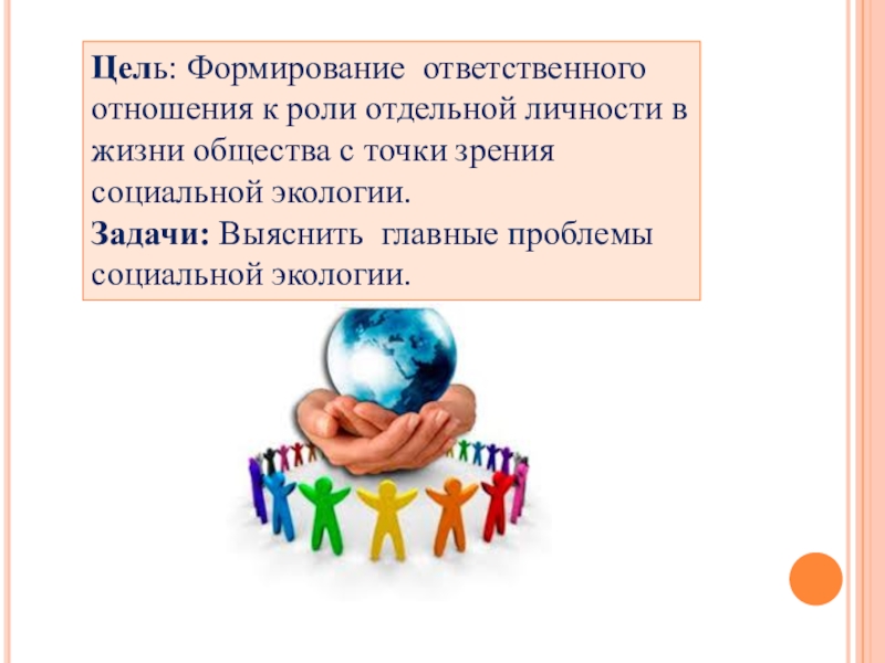 Слайд 2Цель: Формирование ответственного отношения к роли отдельной личности в жизни общества