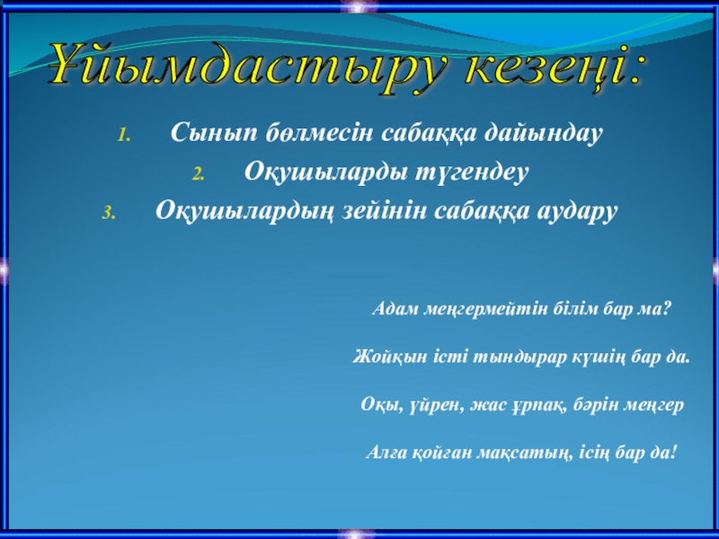 Сабақтың құрылымы: