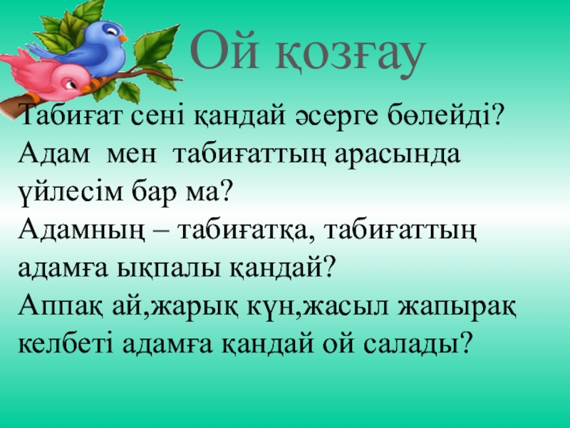Аппақ ай,жарық күн,жасыл жапырақ келбеті адамға қандай ой салады?