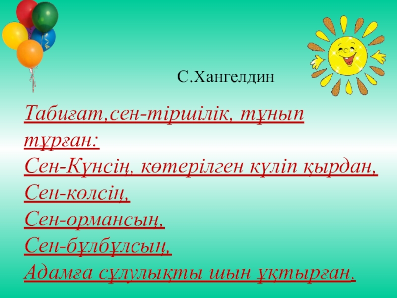 Табиғат,сен-тіршілік, тұнып тұрған: