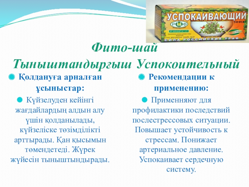 Применняют для профилактики последствий послестрессовых ситуации. Повышает устойчивость к стрессам. Понижает артериальное давление. Успокаивает сердечную систему.