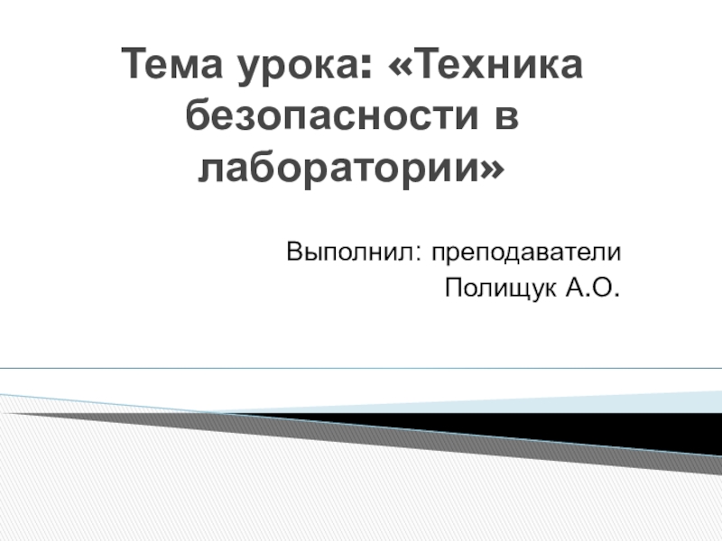 Тема урока: «Техника безопасности в лаборатории»Выполнил: преподавателиПолищук А.О.