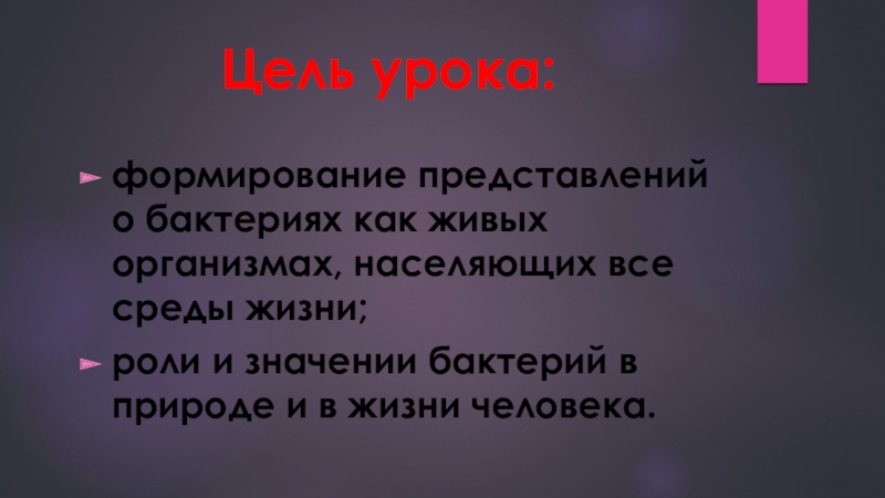 формирование представлений о бактериях как живых организмах, населяющих все среды