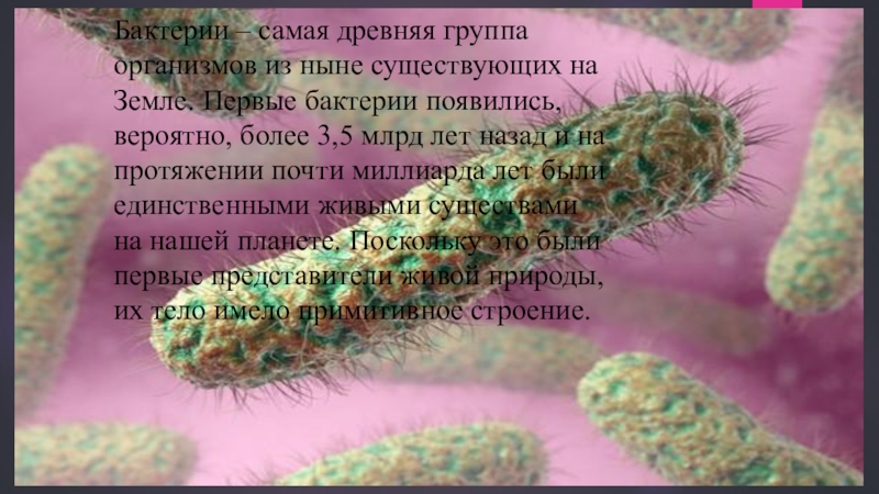 Слайд 17Бактерии – самая древняя группа организмов из ныне существующих на Земле.