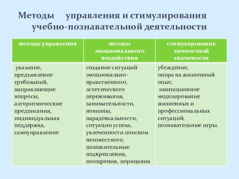 Слайд 11Методы управления и стимулирования учебно-познавательной деятельности