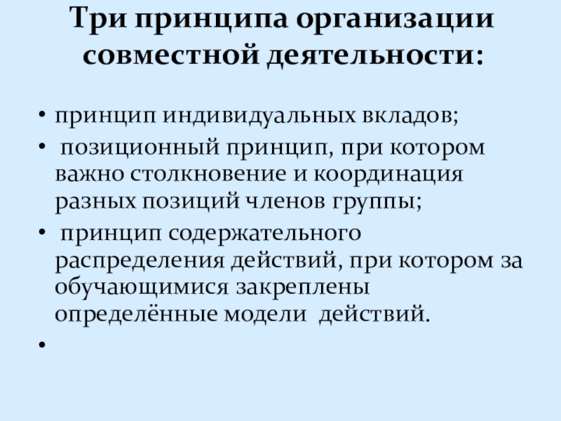 принцип содержательного распределения действий, при котором за обучающимися закреплены определённые модели действий.