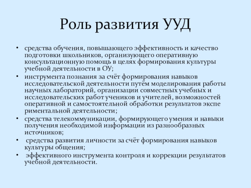 инструмента познания за счёт формирования навыков исследовательской деятельности путём моделирования работы научных лабораторий, организации совместных учебных и исследовательских работ учеников и учителей, возможностей оперативной и самостоятельной обработки результатов экспериментальной деятельности;
