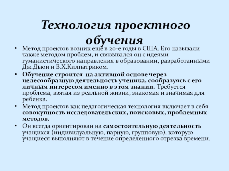 Знания не передаются в готовом виде, а добываются самими обучающимися в процессе познавательной деятельности, активной работе над заданиями, непосредственно связанными с проблемами реальной жизни.