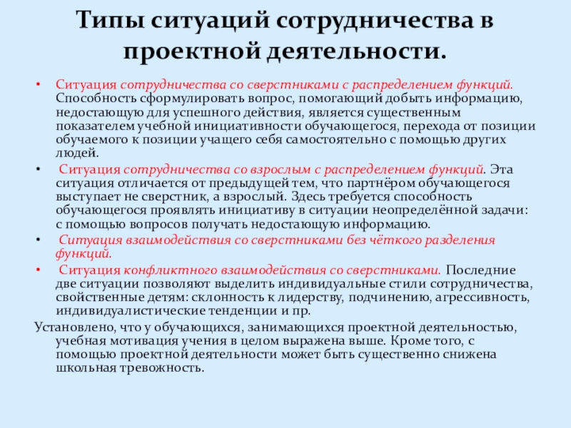 Слайд 46Типы ситуаций сотрудничества в проектной деятельности.