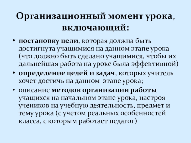 (что должно быть сделано учащимися, чтобы их дальнейшая работа на уроке была эффективной)