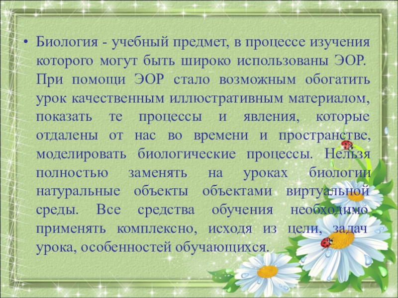 Использование электронных образовательных ресурсов (ЭОР ) на уроках биологии в специальной (коррекционной) школе