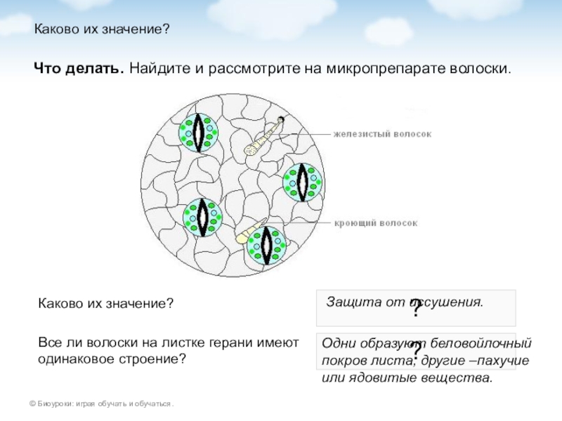 Одни образуют беловойлочный покров листа, другие –пахучие или ядовитые вещества.