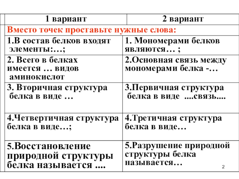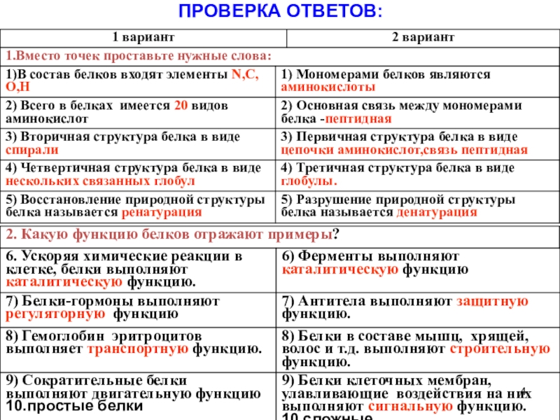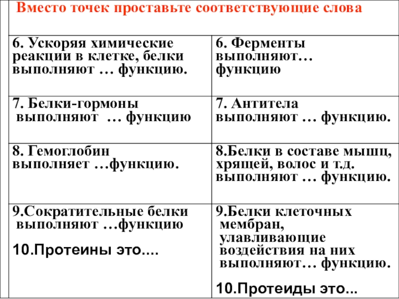 Проверка знаний по теме «Белки, состав, структура, функции»