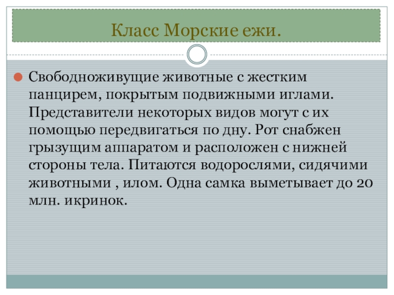 Свободноживущие животные с жестким панцирем, покрытым подвижными иглами. Представители