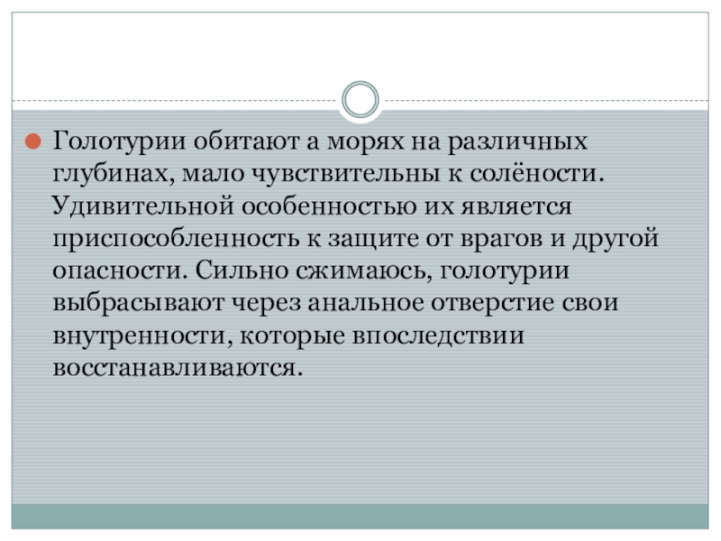 Слайд 12Голотурии обитают а морях на различных глубинах, мало чувствительны к солёности.