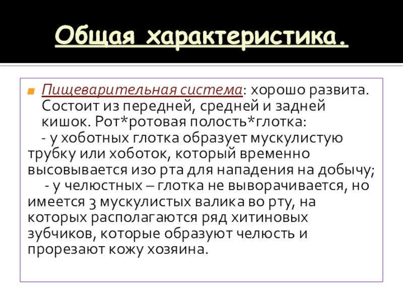 Пищеварительная система: рот*ротовая полость*глотка+зубцы*средняя кишка*задняя кишка*порошица или анальная