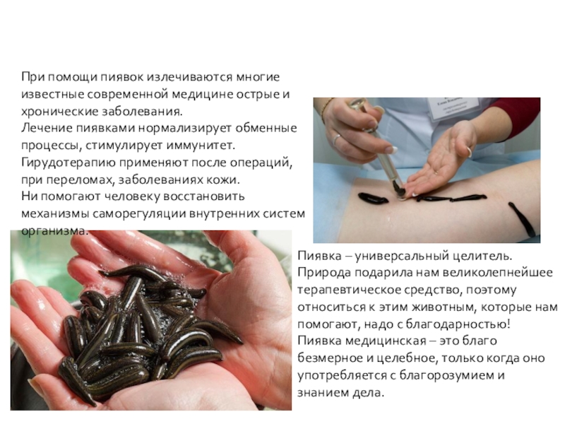 - Человек использует медицинскую пиявку для лечения многих болезней.