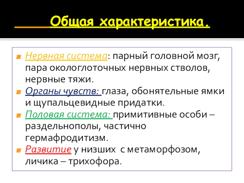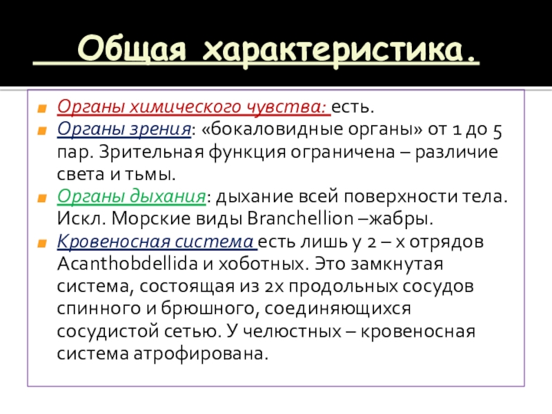 химического чувства – антенны, пальпы, ресничные ямки, чувствительные усики параподий. Редко органы равновесия(статоциты)- от 1 до 5 пар.