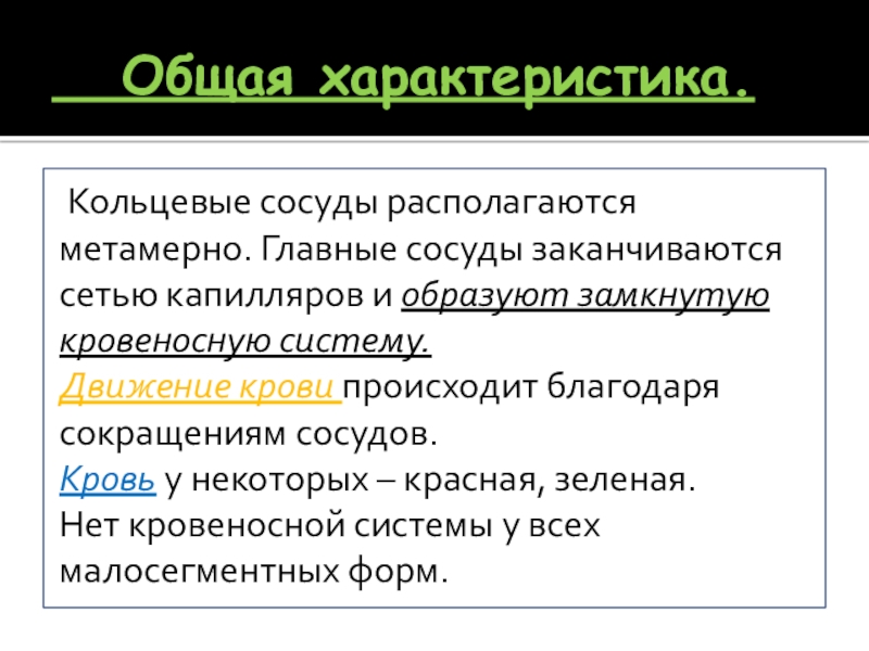 Кольцевые сосуды располагаются метамерно. Главные сосуды заканчиваются
