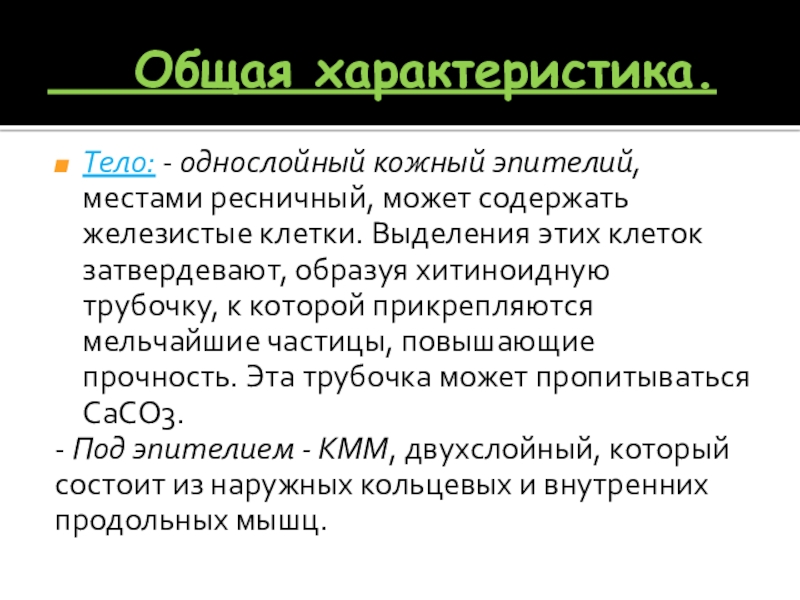 Тело: - однослойный кожный эпителий, местами ресничный, может