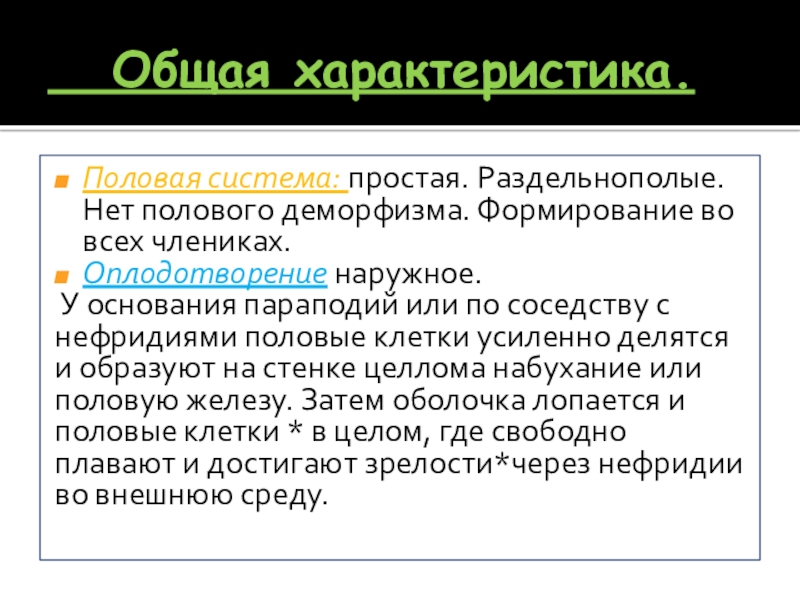 Половая система: примитивные особи – раздельнополы, частично гермафродитизм.