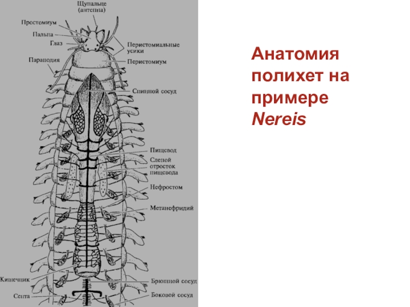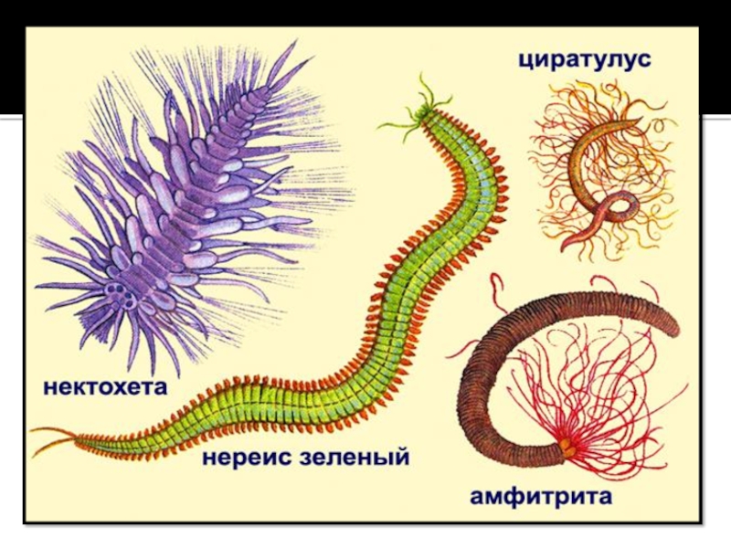 Слайд 40Число сегментов у червей различных видов составляет от 5 -7 до
