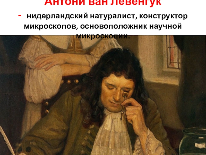 Слайд 1Антони ван Левенгук - нидерландский натуралист, конструктор микроскопов, основоположник научной микроскопии.
