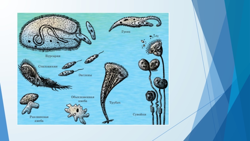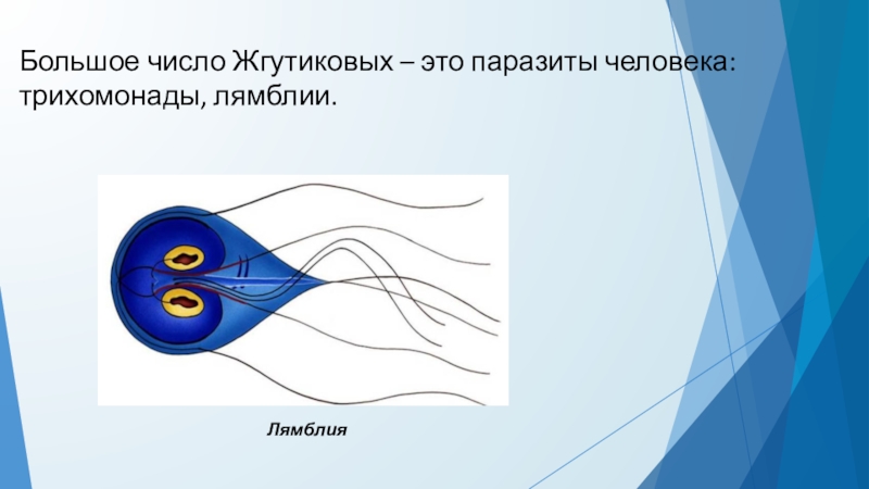 Слайд 10Большое число Жгутиковых – это паразиты человека: трихомонады, лямблии.