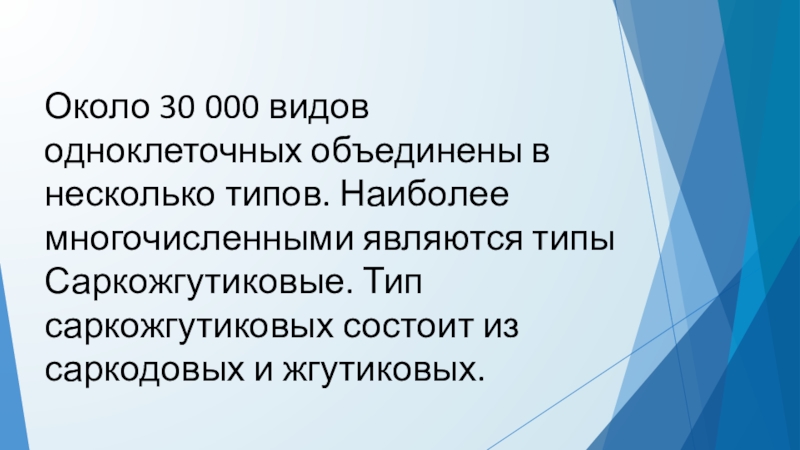 Слайд 4Около 30 000 видов одноклеточных объединены в несколько типов. Наиболее многочисленными