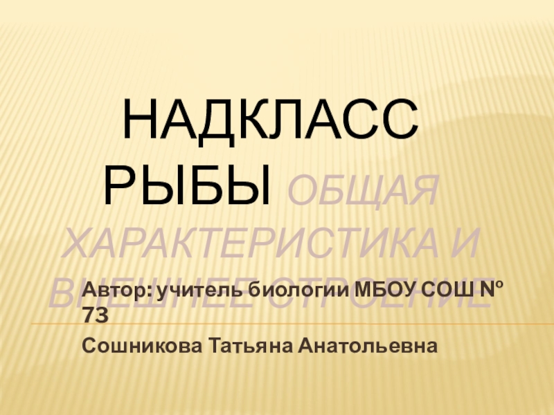 Надкласс рыбы общая характеристика и внешнее строениеАвтор: учитель биологии МБОУ СОШ № 73Сошникова Татьяна Анатольевна