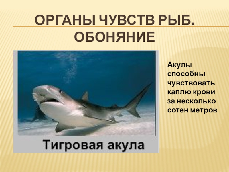 Органы чувств рыб. ОбоняниеАкулы способны чувствовать каплю крови за несколько сотен метров