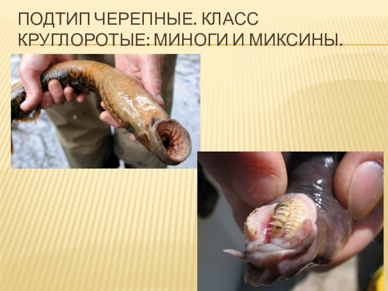 Слайд 9Подтип черепные. Класс круглоротые: миноги и миксины.