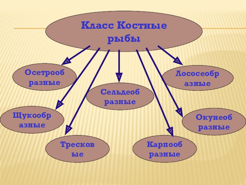 Класс Костные рыбыЛососеобразныеСельдеобразныеКарпообразныеТресковыеЩукообразныеОкунеобразныеОсетрообразные
