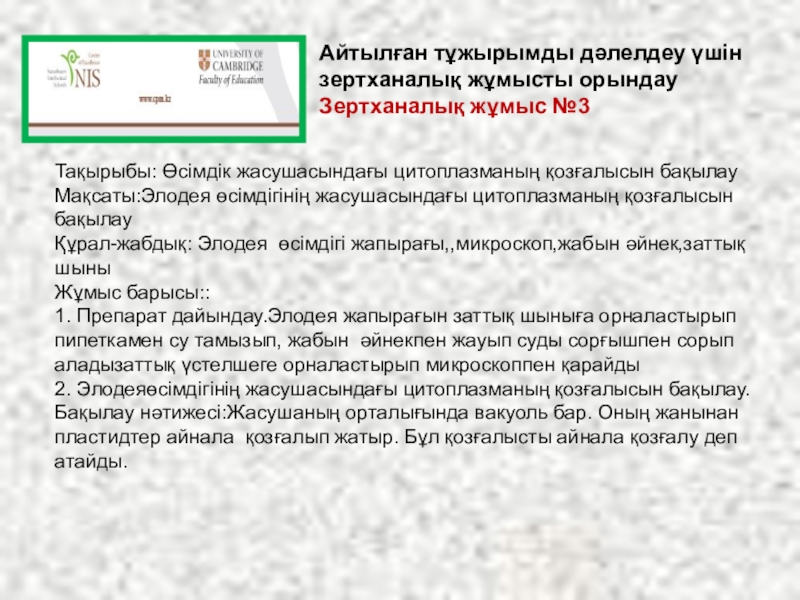 Циклоз – клетка ішіндегі цитоплазманың қозғалысы